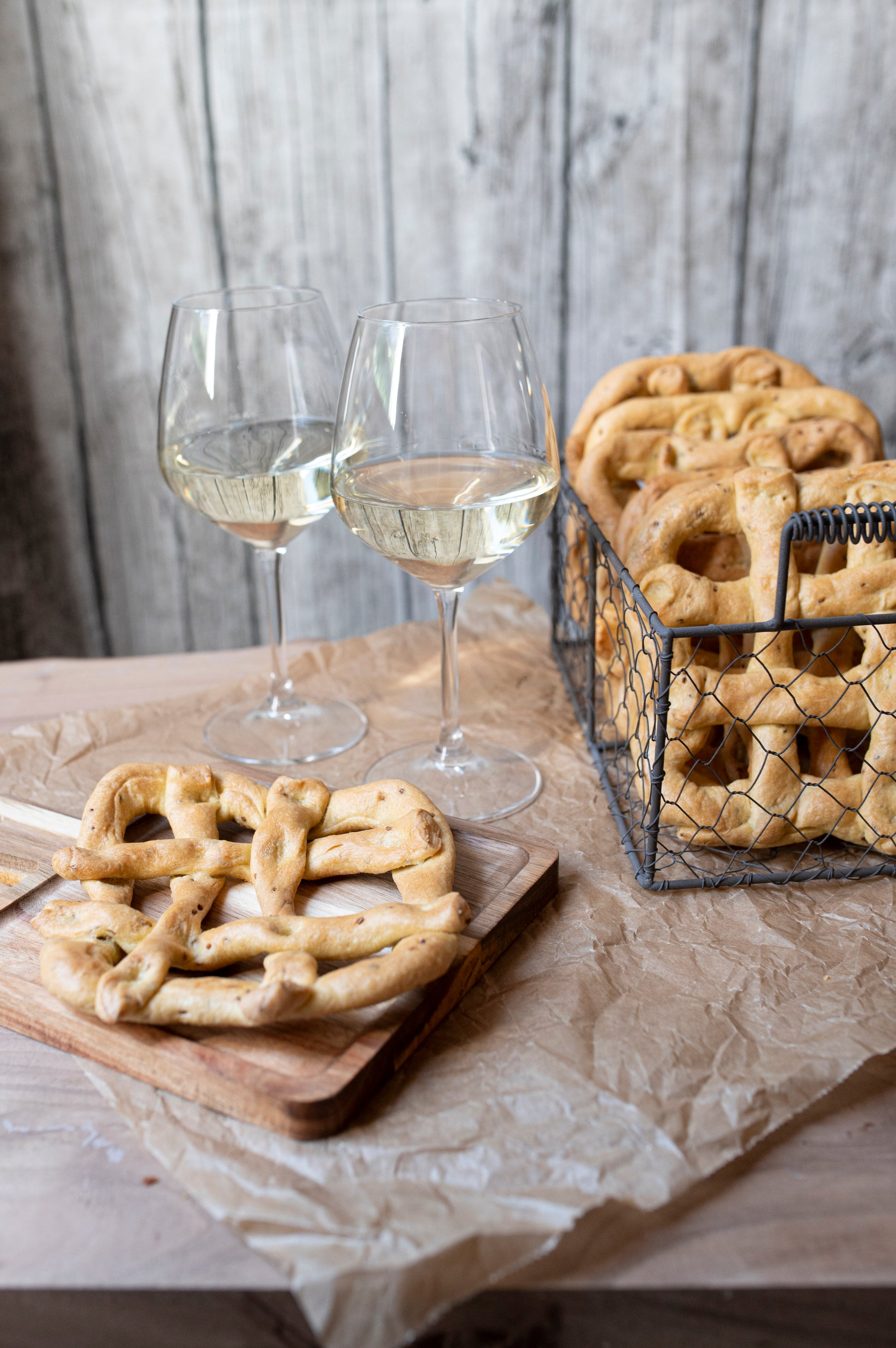 Farina di grano tenero di tipo 0, olio extravergine di oliva (17%), uova fresche, acqua, vino bianco (5%), sale, semi di anice, lievito madre.